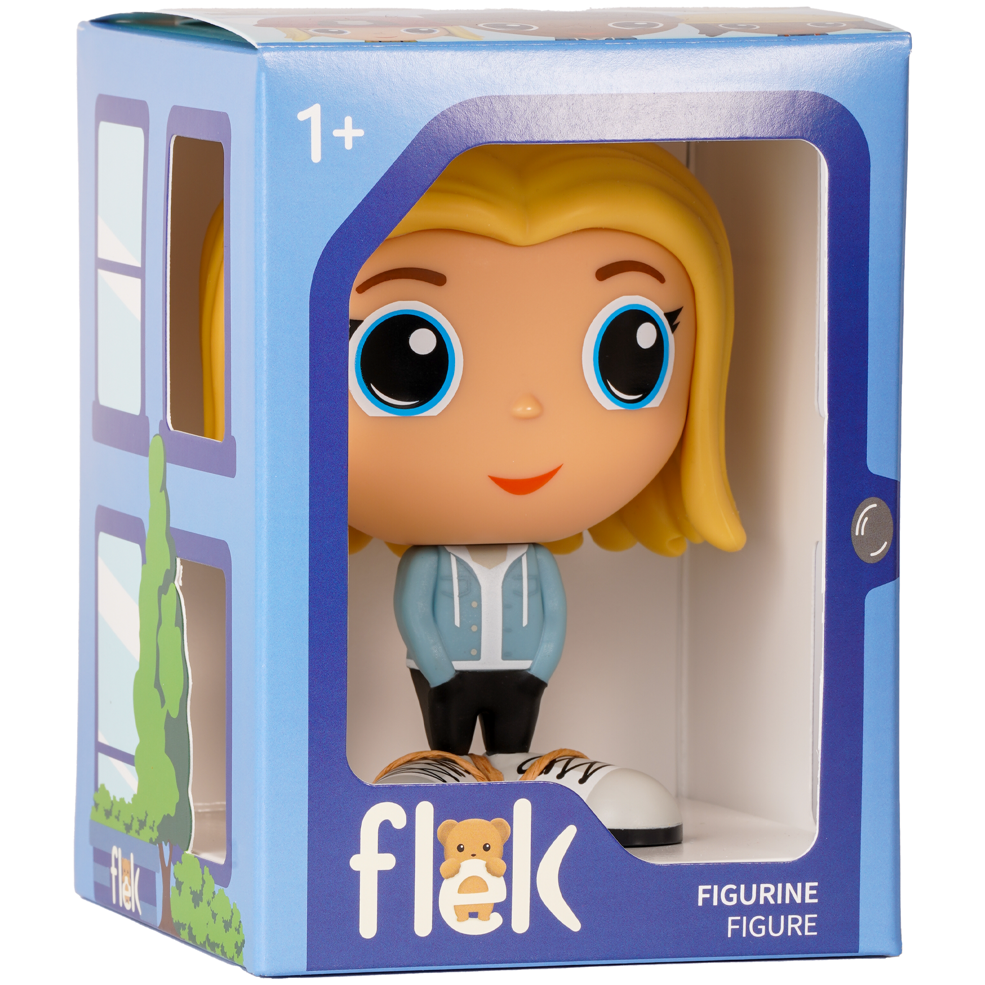 Chaque figurine à la ville Flek porte une veste en jean classique sur un chandail blanc et un pantalon noir parfaits pour les aventures urbaines.