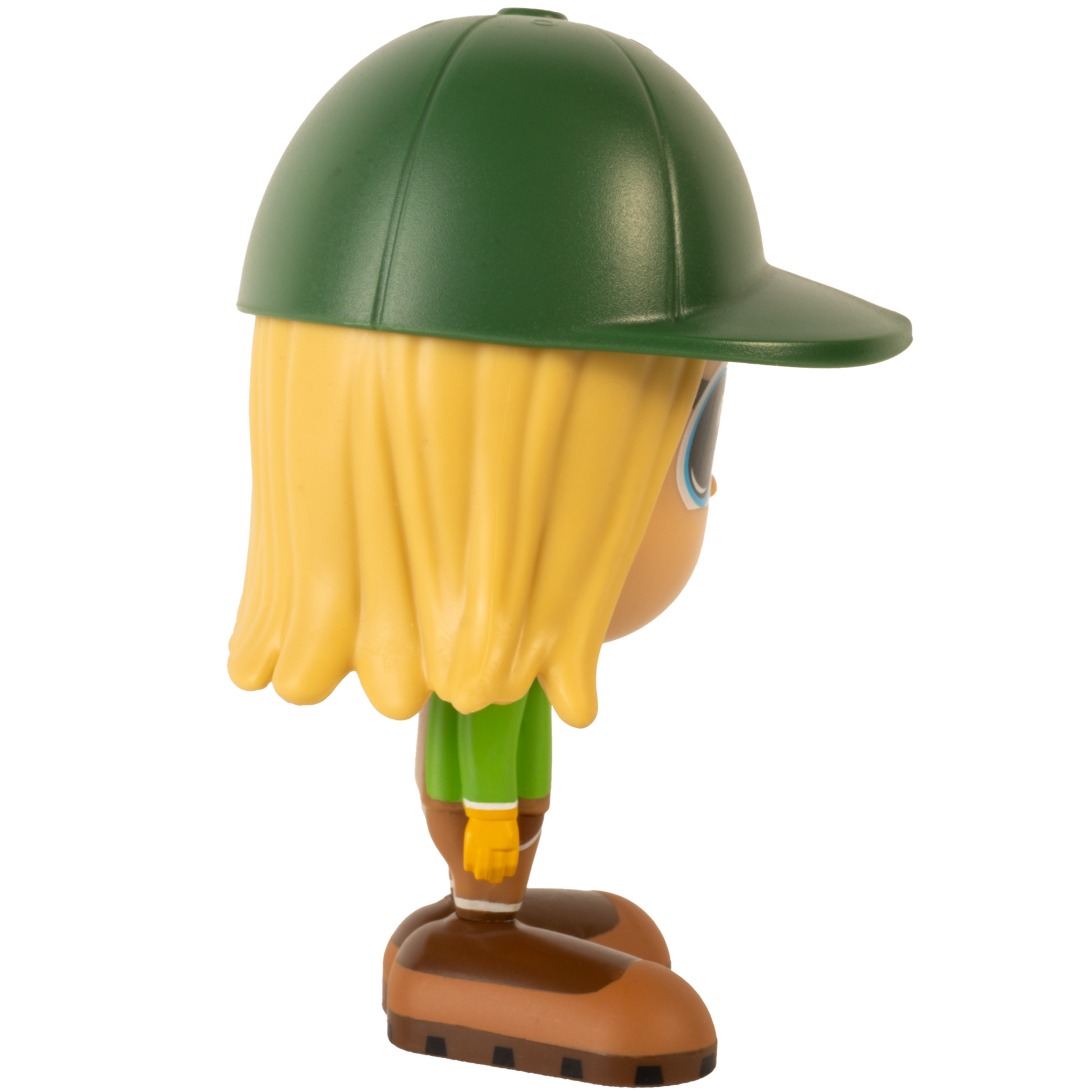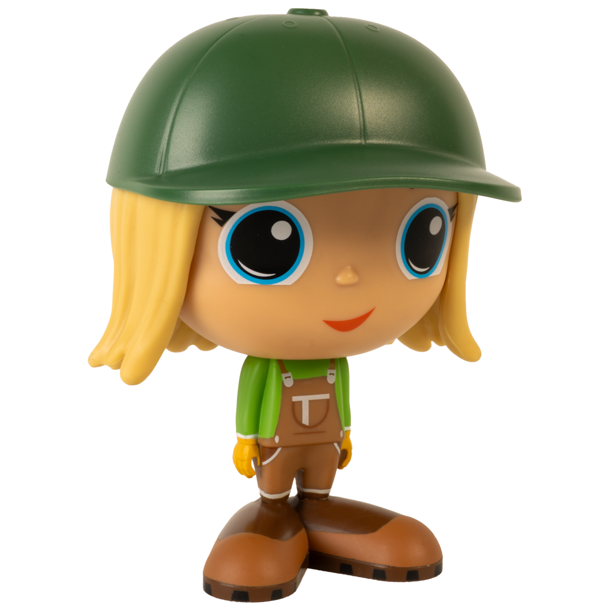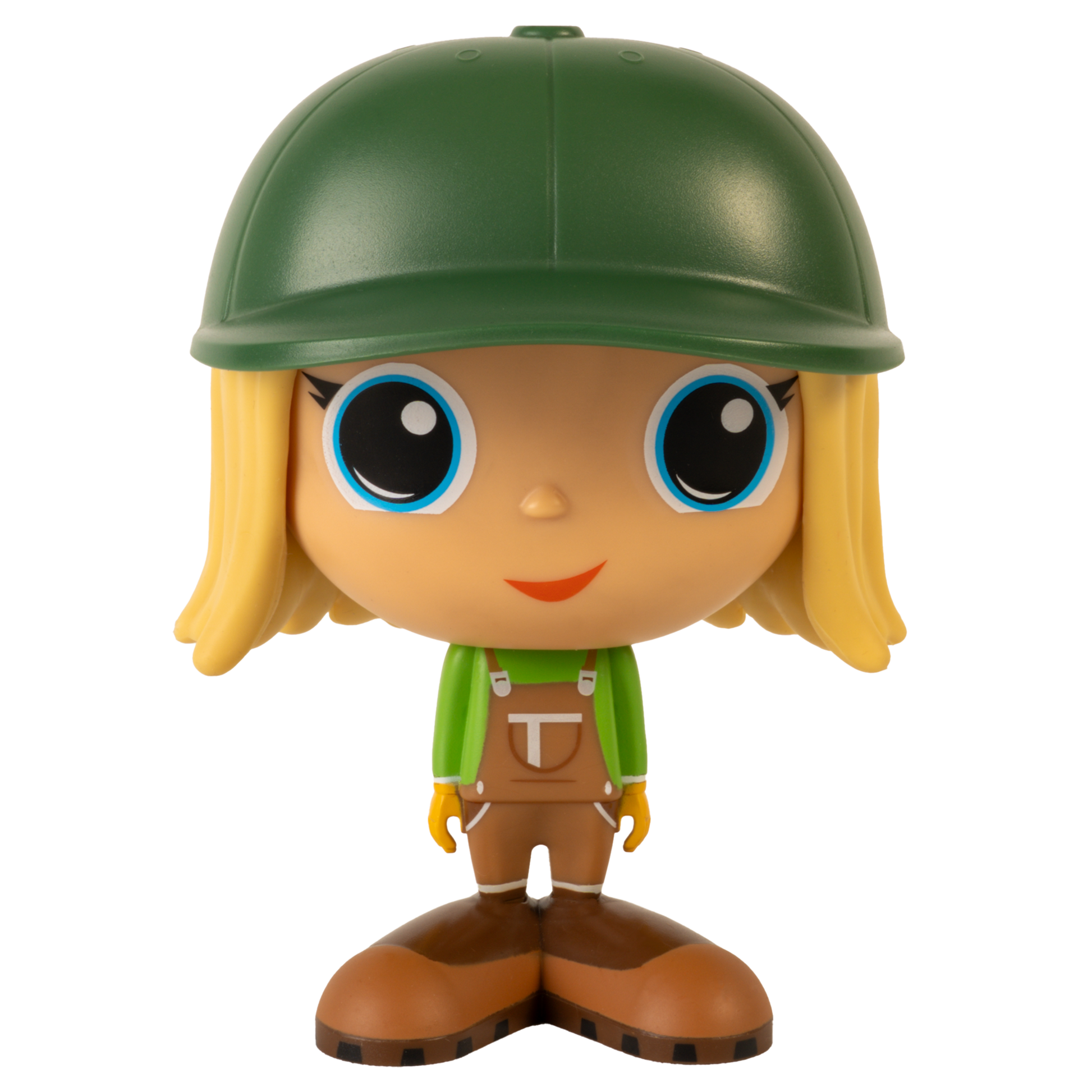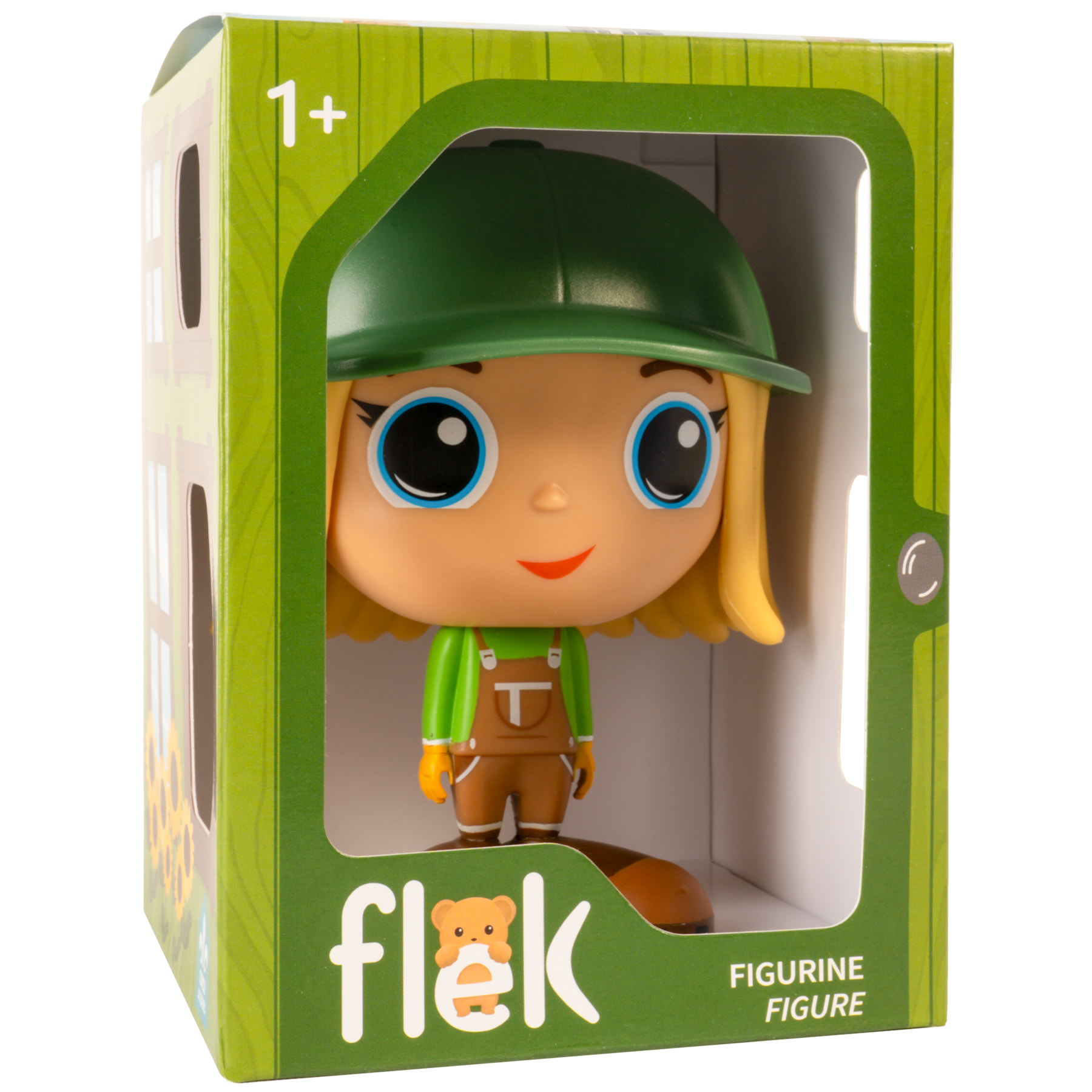 Chaque figurine de fermier Flek porte une chemise verte, une salopette de travail brune et une casquette assortie, parfaites pour les journées bien remplies à la ferme.