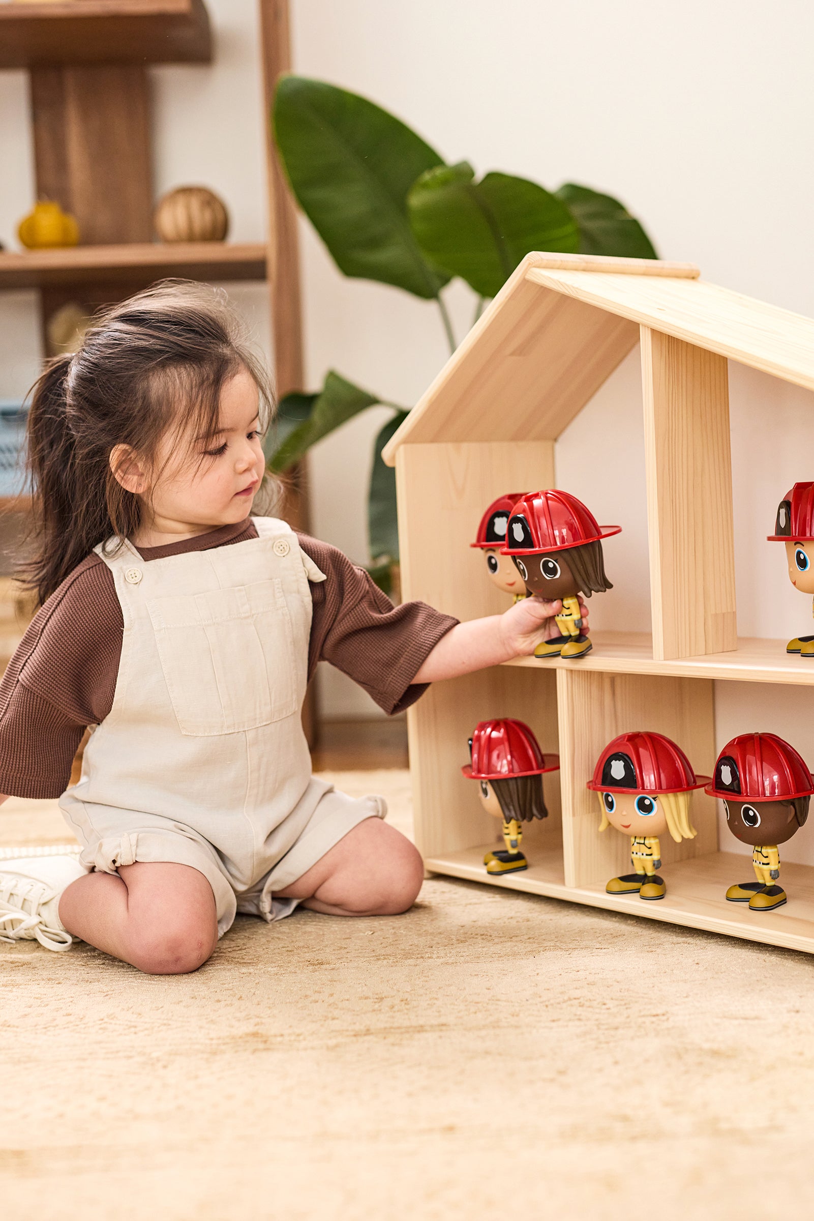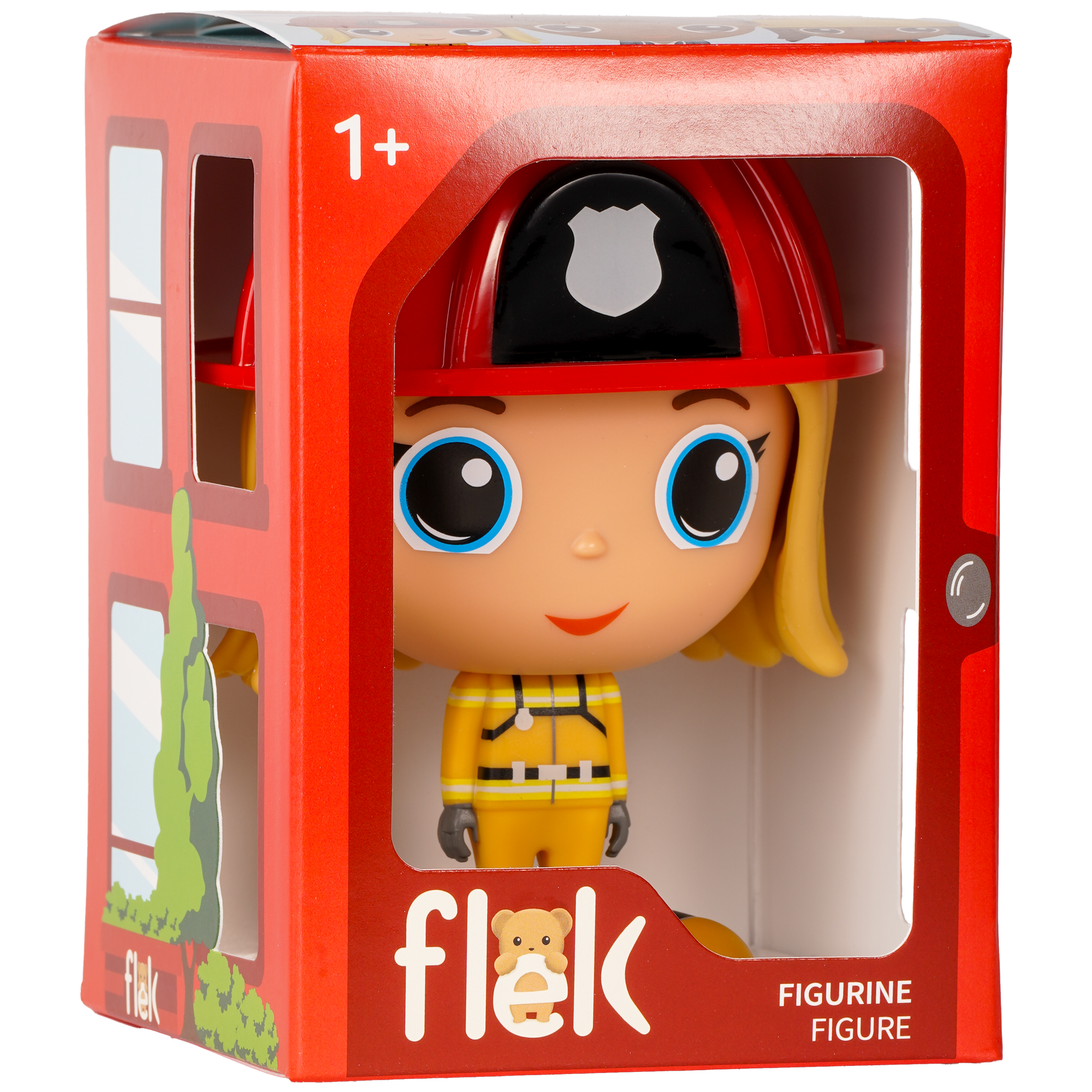 Chaque figurine de pompier Flek possède tout l’équipement nécessaire pour passer à l’action. Ces courageux personnages portent le casque de sécurité rouge classique avec une tenue de feu, des bottes, des gants et un réservoir d’air.