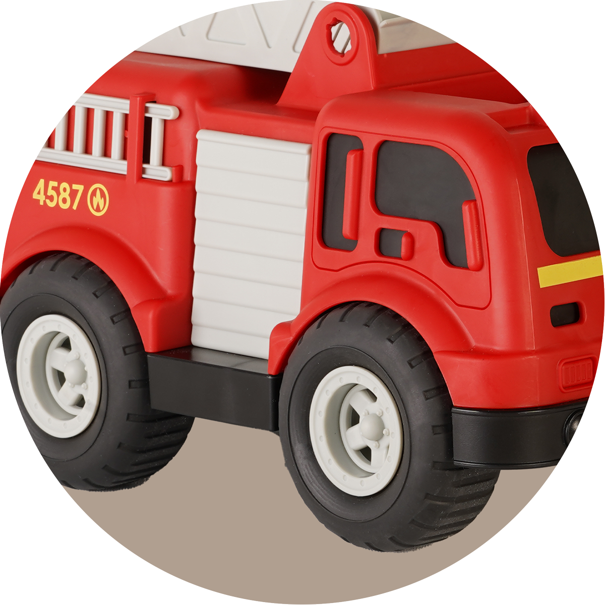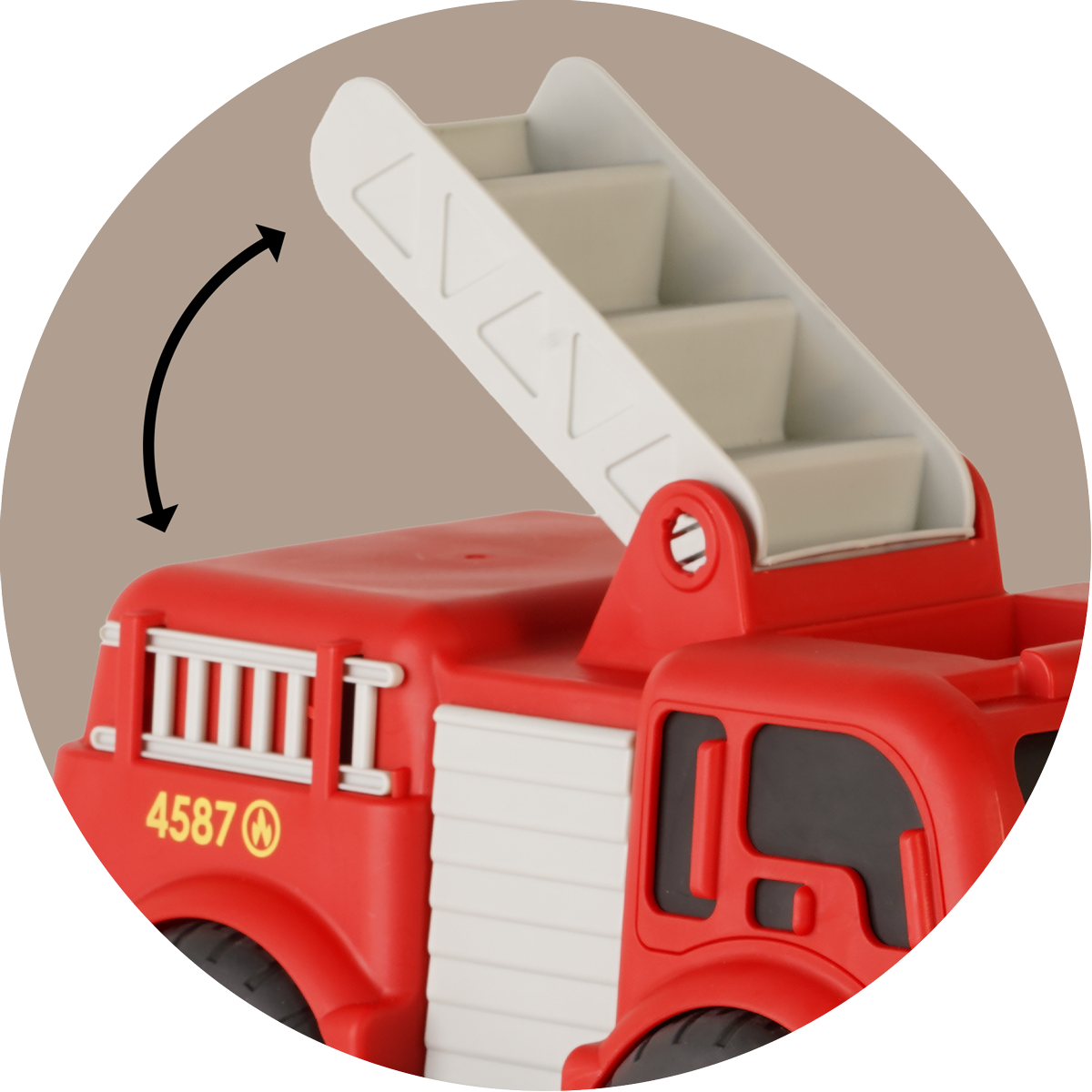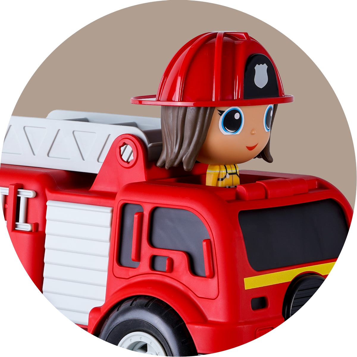 Conçu avec un espace à l'avant spécialement qui permet de fixer les figurines Flek au siège conducteur. Les enfants peuvent ainsi s'imaginer au volant de leur camion de pompier.