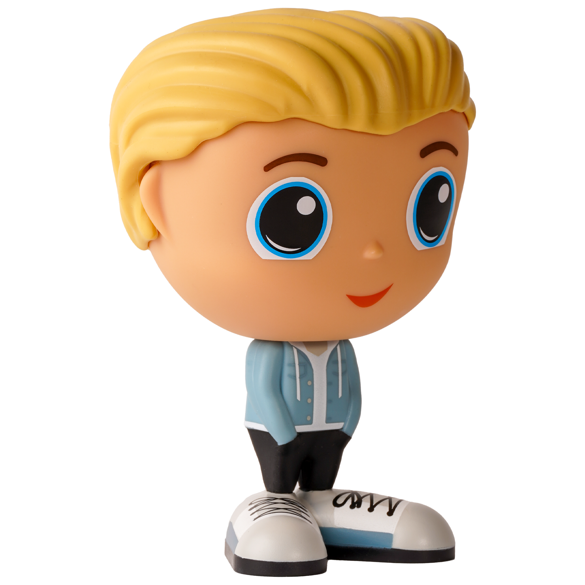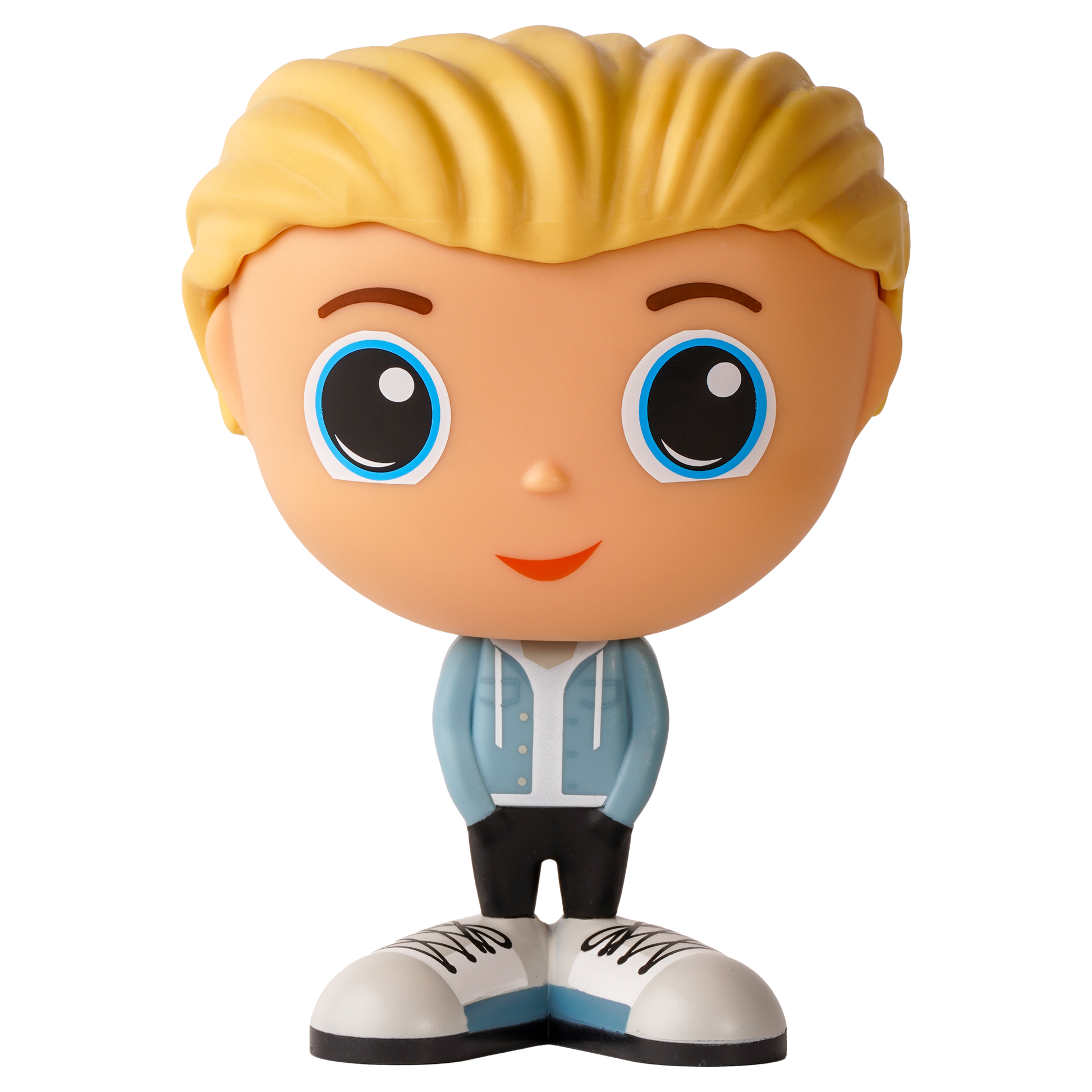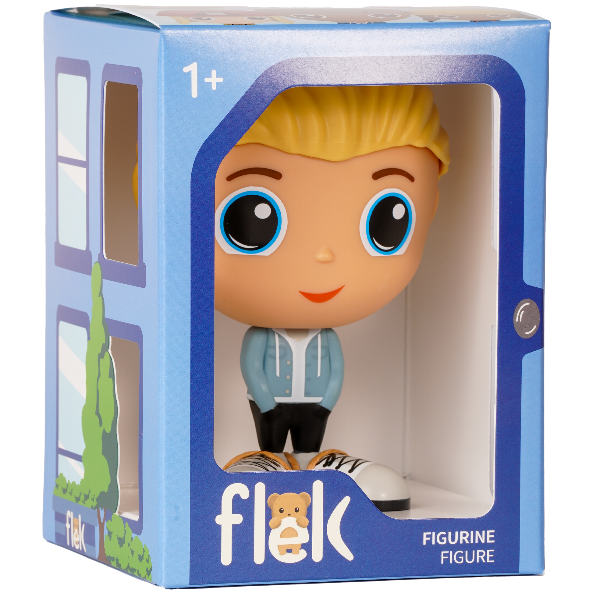 Chaque figurine à la ville Flek porte une veste en jean classique sur un chandail blanc et un pantalon noir parfaits pour les aventures urbaines.