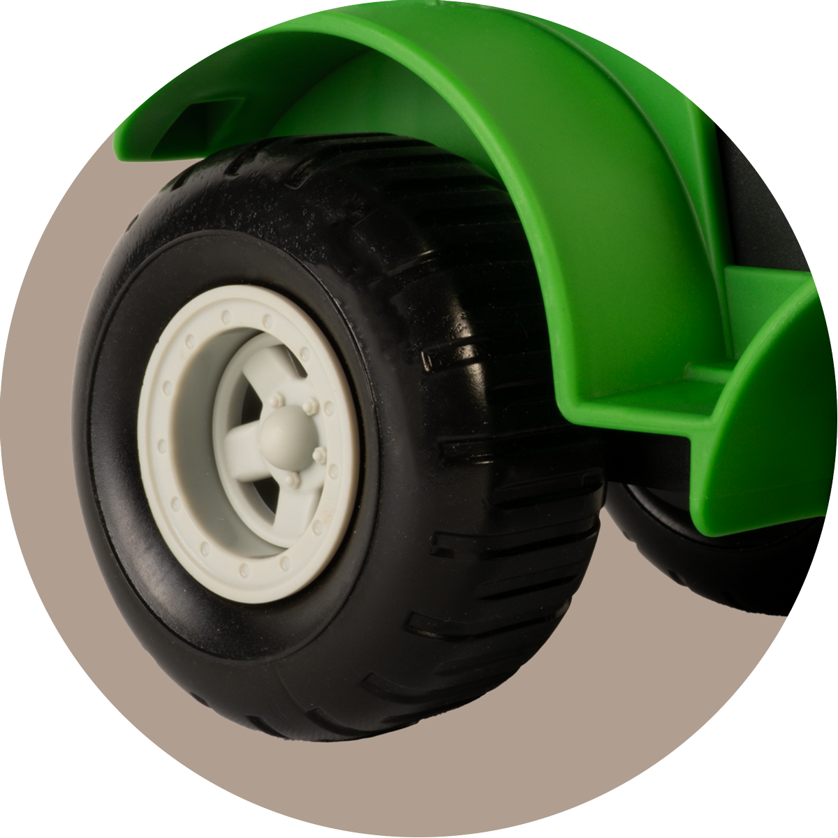 Conçu avec un espace à l'avant spécialement qui permet de fixer les figurines Flek au siège conducteur. Les enfants peuvent ainsi s'imaginer au volant de leur tracteur.