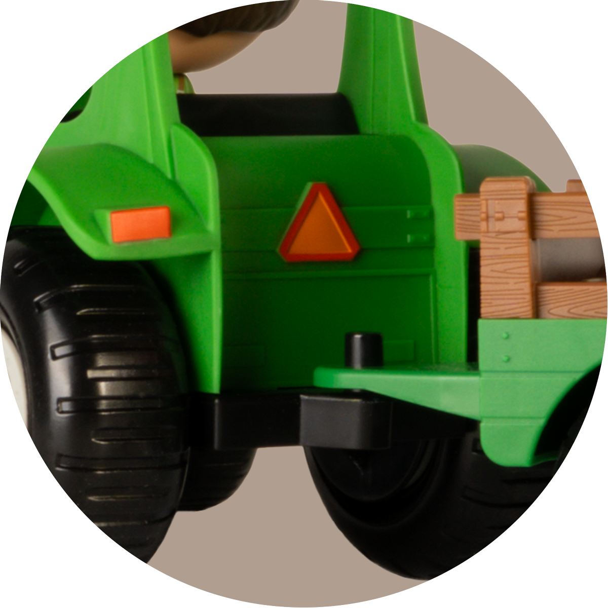 Équipé d’une attache arrière pour la remorque, le tracteur Flek est prêt pour toutes les aventures à la ferme. Les enfants peuvent charger, transporter et livrer leurs animaux et récoltes, stimulant ainsi leur imagination et favorisant un jeu interactif et réaliste.