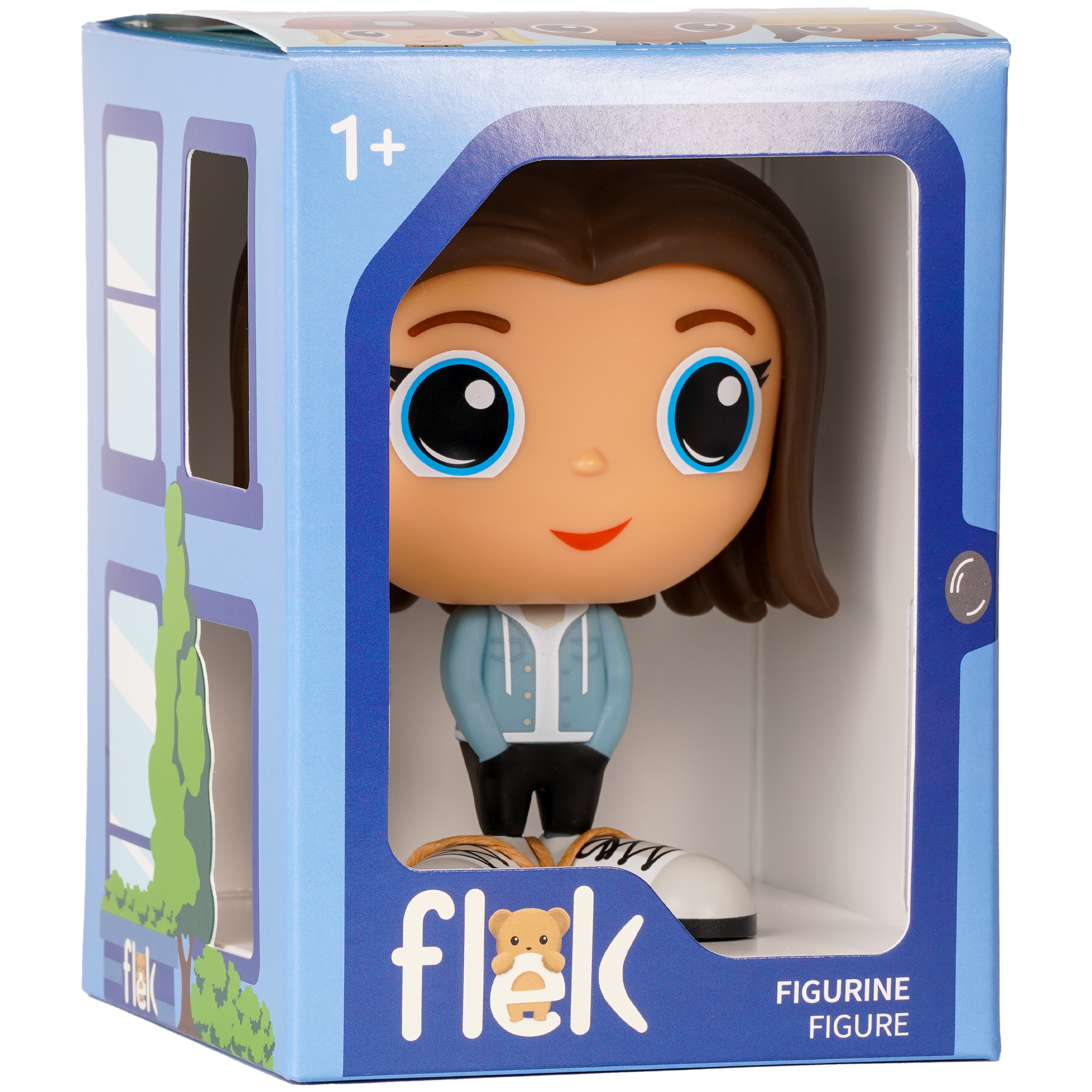 Chaque figurine à la ville Flek porte une veste en jean classique sur un chandail blanc et un pantalon noir parfaits pour les aventures urbaines.