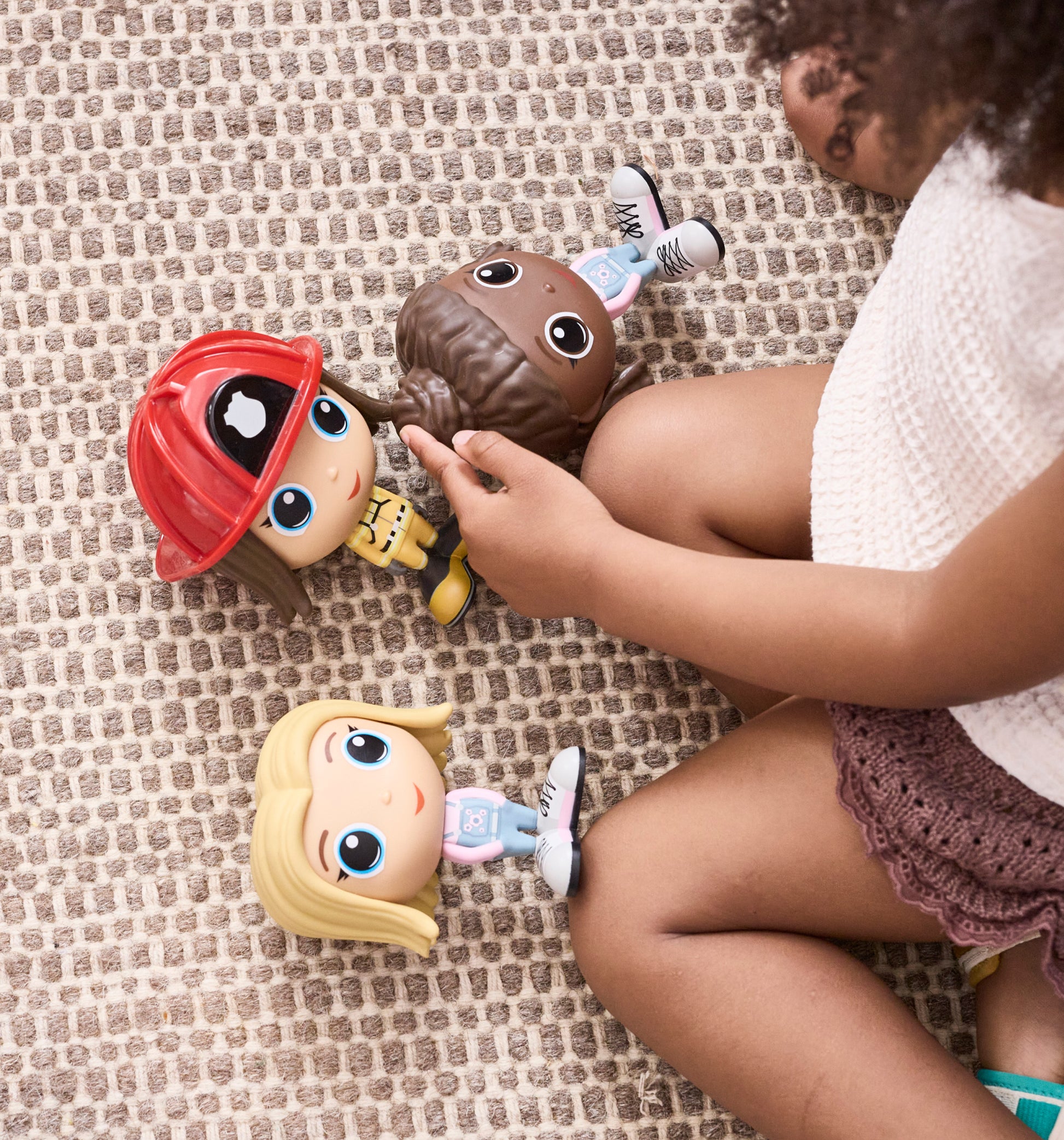 La grosse tête, avec ces grands yeux, visuellement attrayants, capte l’attention des enfants. Les cheveux texturés ajoutent un attrait visuel et permettre à chaque figurine de se démarquer.