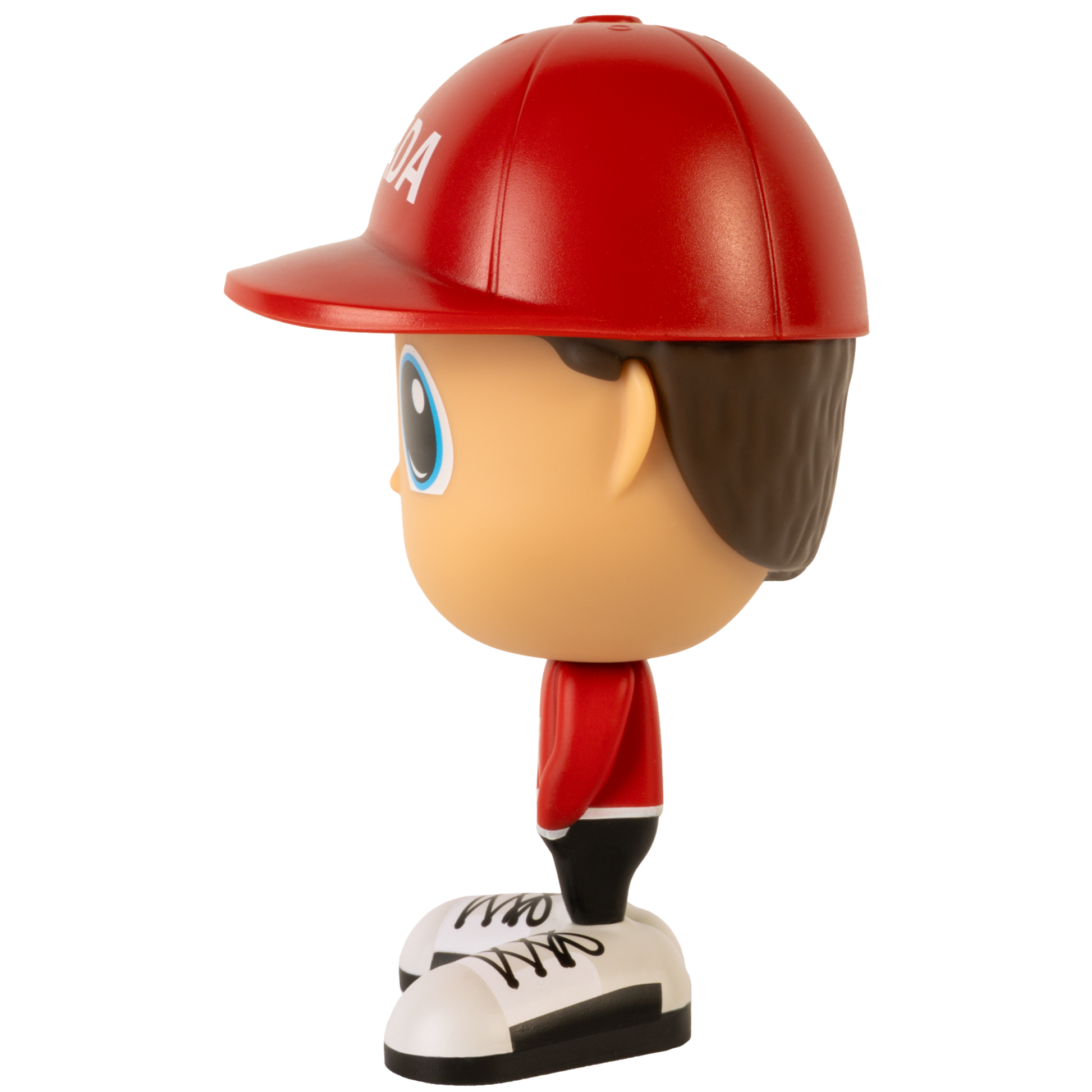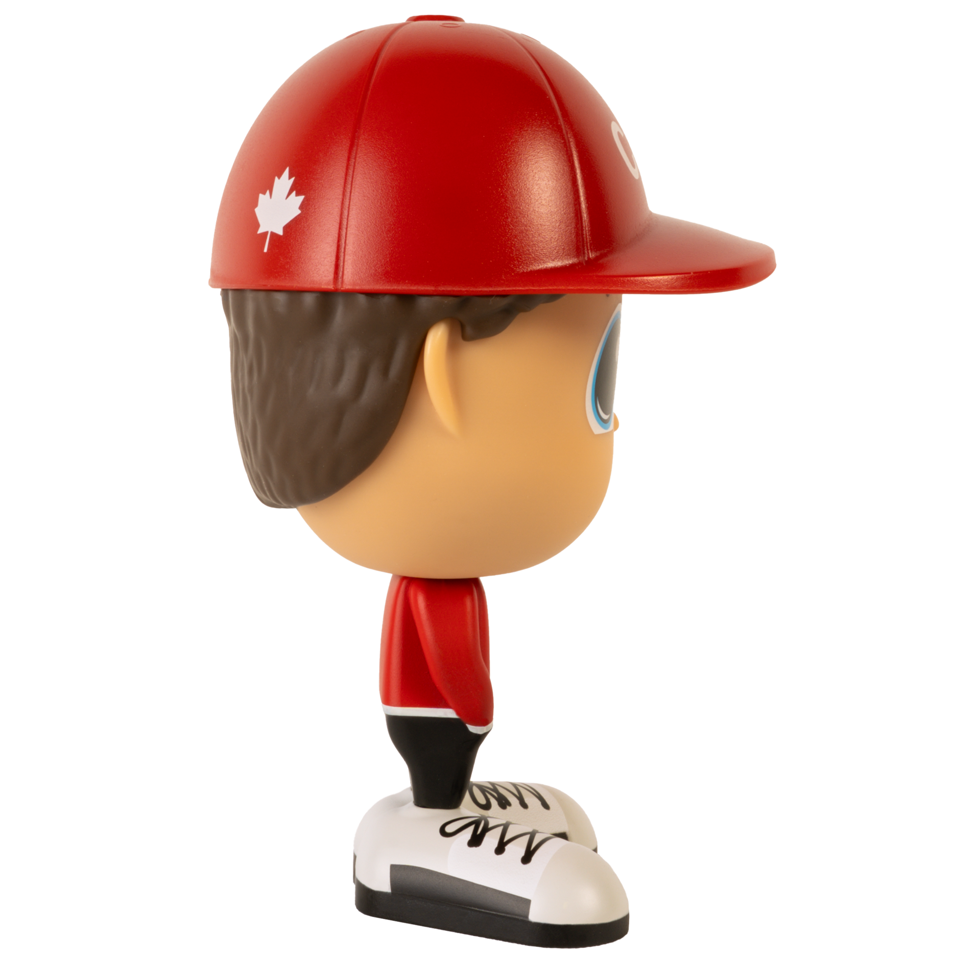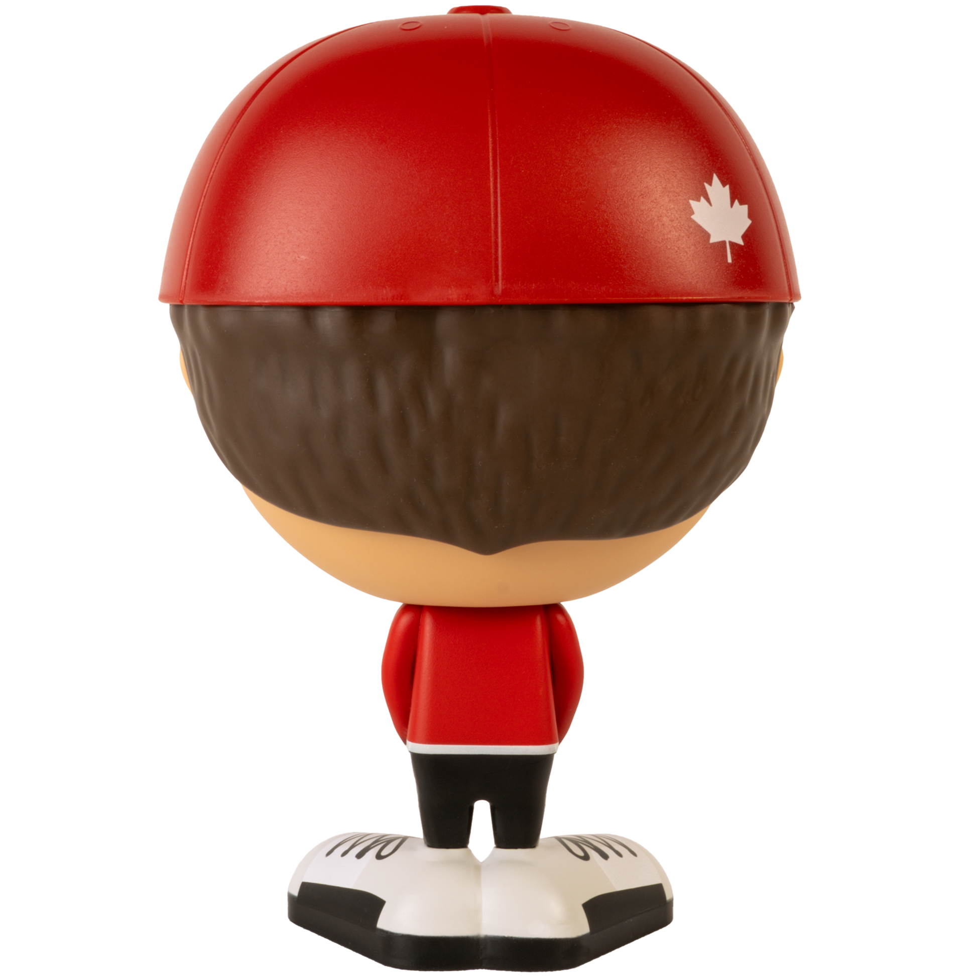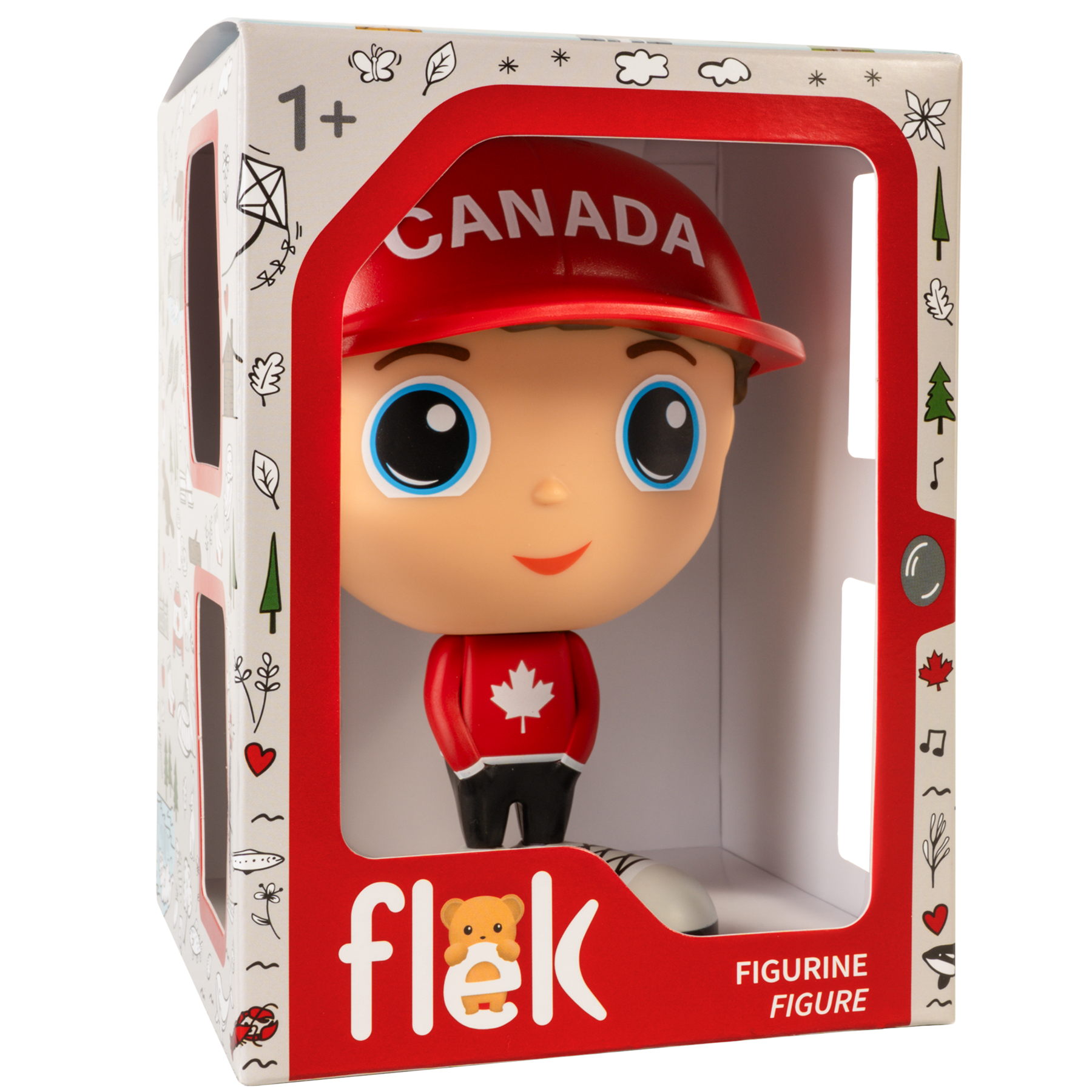 Chaque figurine Flek du Canada porte fièrement les couleurs du pays: un chandail rouge orné d’une feuille d’érable blanche, un pantalon noir et une casquette rouge marquée CANADA à l’avant et d’une feuille d’érable à l’arrière.